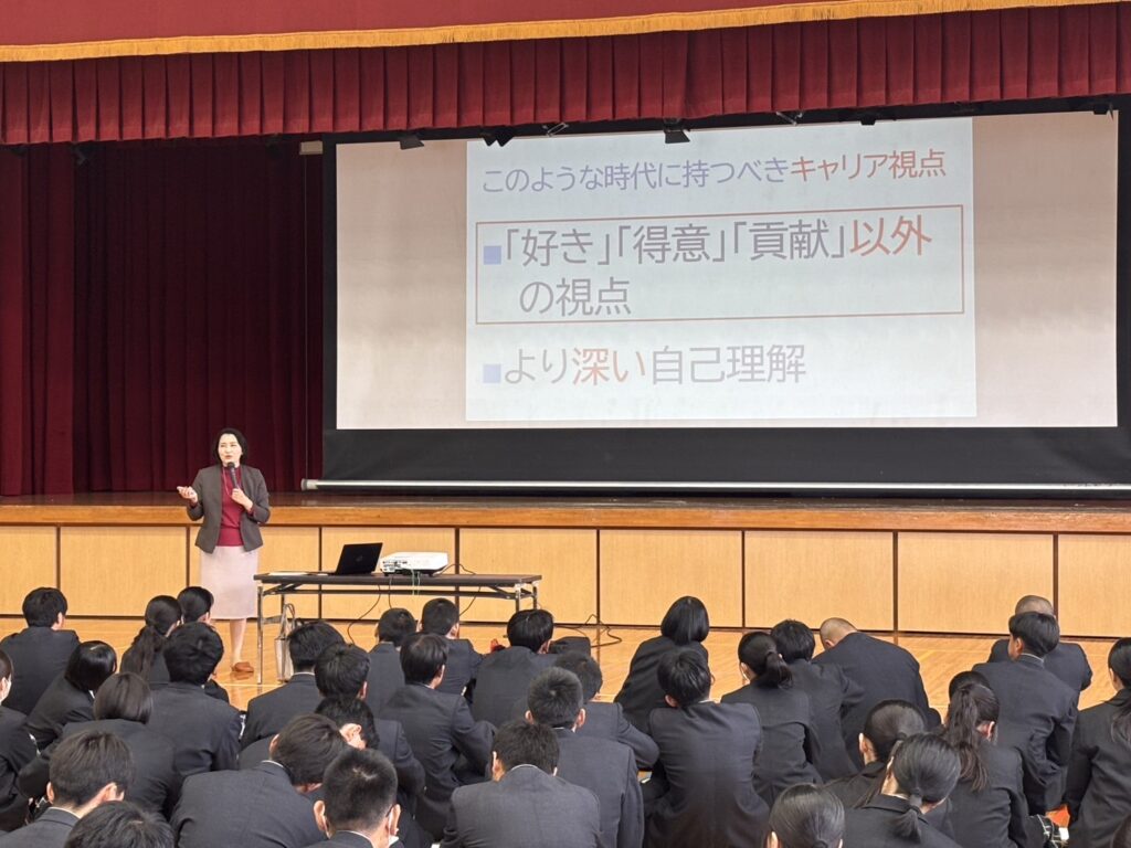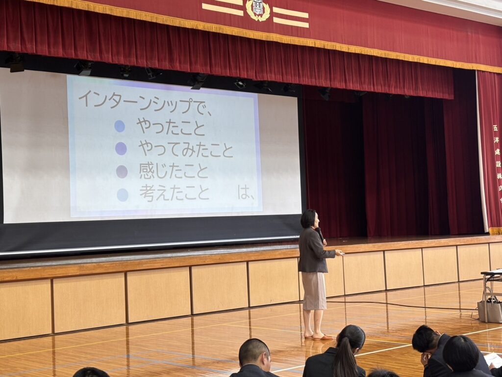 11月17日(月)にインターンシップ後の振り返り学習として、(株)NOLTYプランナーズの山下様に講義をしていただきました。インターンシップを通して、感じたことや学んだことを言語化することで、自分の知識や考えを深めることができ、今後の職業観や人生観に大きく影響することを学びました。